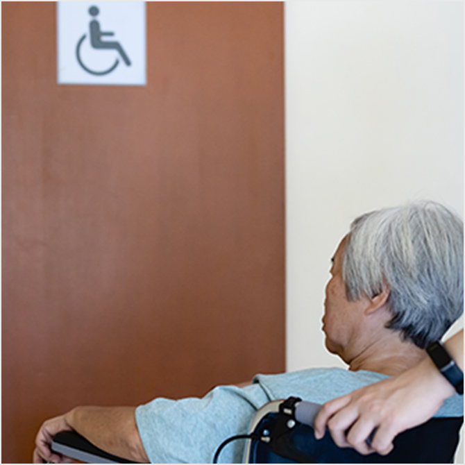 足が不自由なためトイレに行ったり、衣服を脱ぐのに時間がかかる、尿器がうまく使えない、認知症があってトイレを認識できないといった理由で、膀胱の機能とは関係なく尿失禁が生じる状態を、機能性尿失禁と呼びます。高齢者では、他のタイプの尿失禁が合併していることも多いとされています。