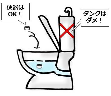 水洗タンクを洗浄するものではありませんので、水洗トイレのタンク内には使わないでください。