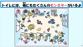 「トイレモンスターズ」を使用した授業スライドの様子