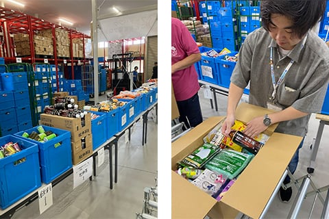 2016年からNPO法人フードバンク山梨と協働し、「青い鳥子ども支援プロジェクト」として、一人親家庭への食料支援を実施しています。運営費の寄付に加え、「熱さまシート」や「桐灰カイロ」「のどぬ~る ぬれマスク」など、当社製品も提供し、従業員が実際に支援物資の箱詰めボランティアに参加する活動も実施しています。また、2022年末からは資金援助した新倉庫が稼働しており、これにより一人親家庭を支援する体制がさらに充実されました。